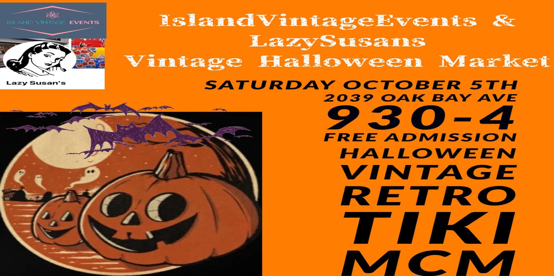 Island Vintage Events Halloween Vintage Fair and Maker Market @lazysusansshop 2039 Oak Bay Ave Saturday October 5th 2024 930-4. Halloween, Vintage, Retro, Tiki, Clothing, Housewares, Toys, Makers, and much more…Free Admission