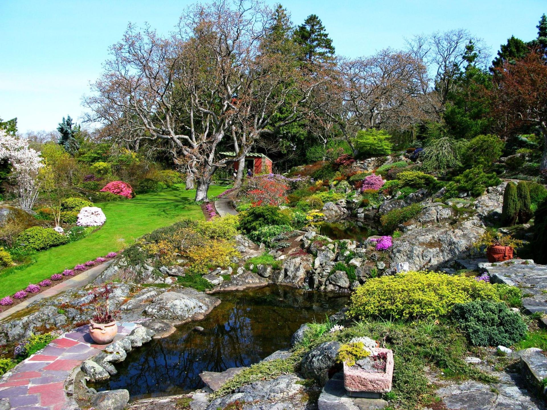 The garden offers an escape from the rush of modern life. Created in 1946 by Prince and Princess Abkhazi, it is a heritage garden famous for its majestic trees and dramatic site.